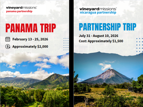 As our Vineyard Missions partnership trips to Panama and Nicaragua draw near, we invite you to be in prayer. Please pray for our teams, the partners we will serve alongside, and for God to move powerfully through these trips for His glory.