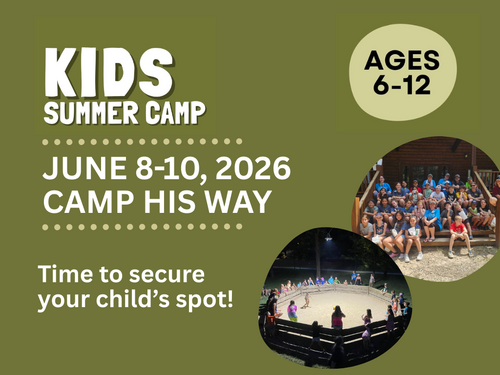 We’re excited to head back to Camp His Way for another incredible year of Kids Camp! This three-day experience is always a highlight of the summer, filled with worship, fun activities, friendships, and powerful moments with God. We are not collecting full registration at this time—just securing spots. To reserve your child’s place, simply click on the image, complete the basic information form and submit the $50 registration fee online selecting "Children's Ministry" when giving, or by cash or check, noting your child's name.