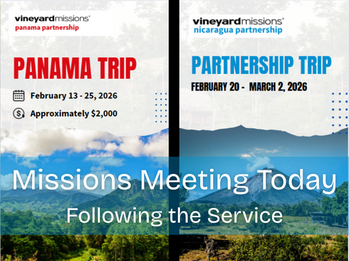 Stay after church today to learn more about our Missions Partnerships, and what to expect on our upcoming missions trips.